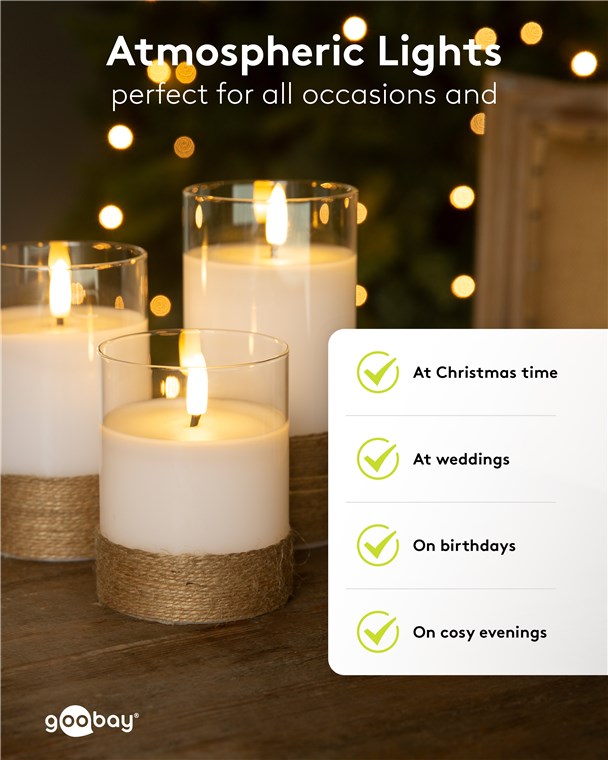 - The LED lights are a safe lighting solution without fire hazard for both humans and pets – suitable for all areas where real candles are too dangerous or not permitted