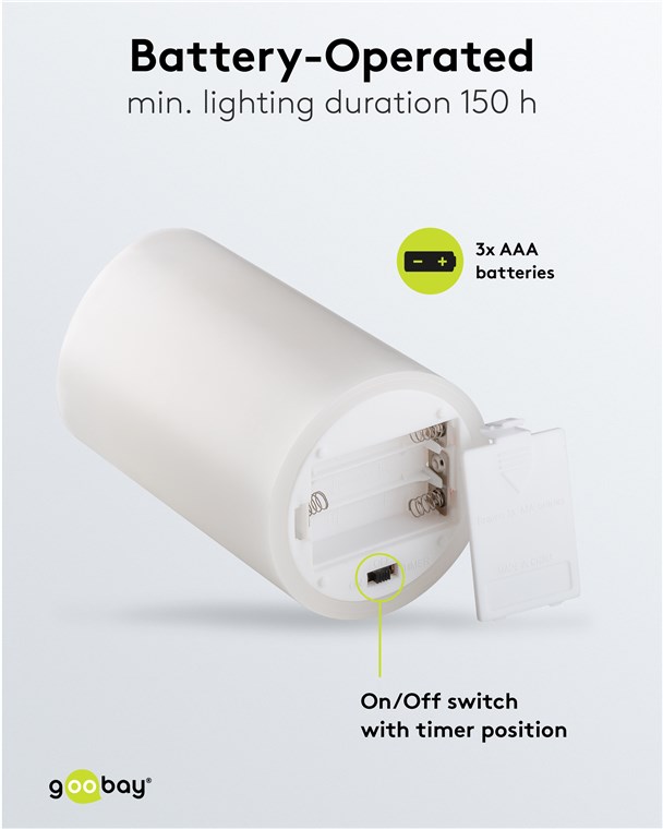 - Dimensions per candle (H x Ø): 10 x 7.5 cm, each LED candle is powered by 3x AAA batteries (not included)