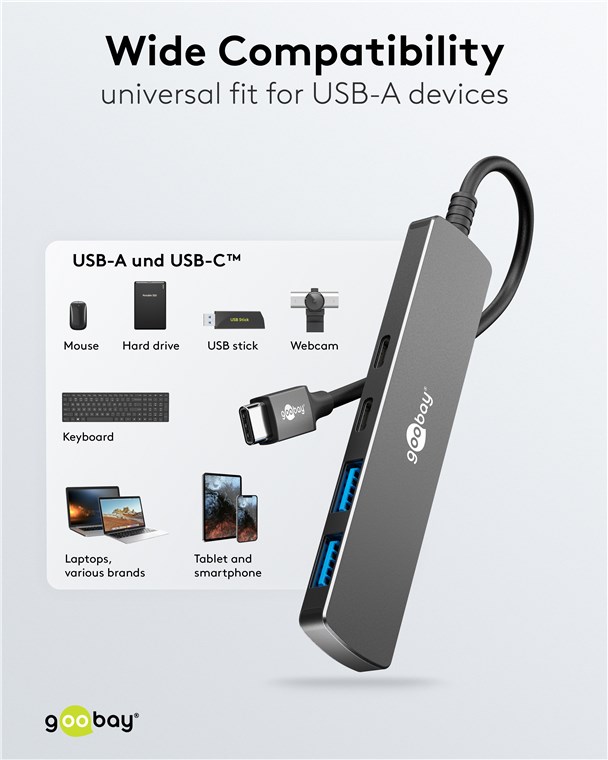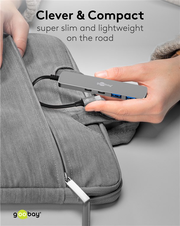 Maximum connectivity for every tablet, smartphone or laptop via just one USB-C™ port: The slim hub multiplies the connection, suitable for all USB-C™ and USB-A devices and simultaneously delivering SuperSpeed data rates via the USB 3.2 standard. No more annoying re-plugging or too few ports – the handy multiport adapter is ideally equipped for all digital challenges.