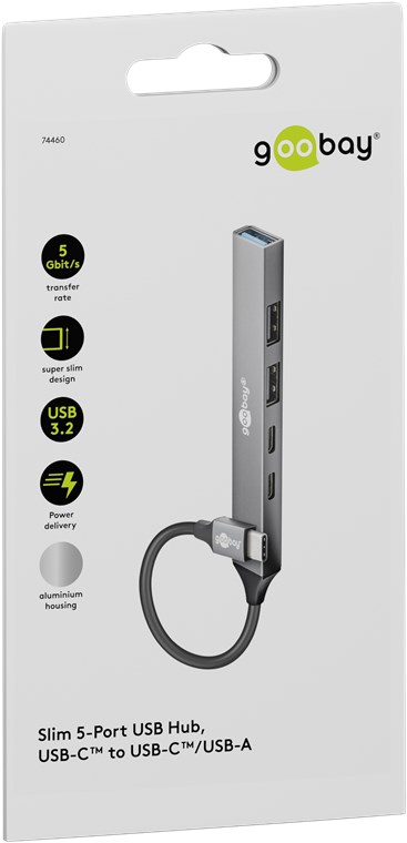 Slim 5-Port USB Hub, USB-C™ to USB-C™/USB-A, 5 Gbit/s