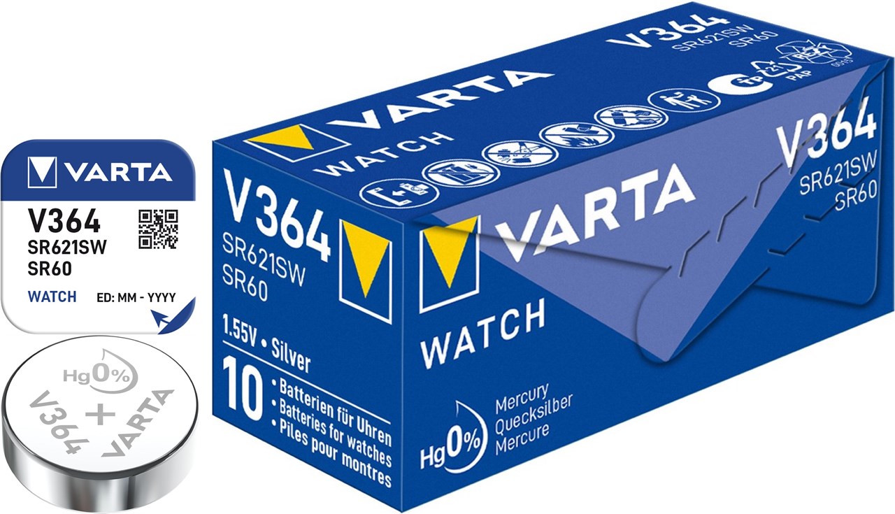 - VARTA button batteries V364 provide constant power and are the reliable energy supplier for all home and household applications