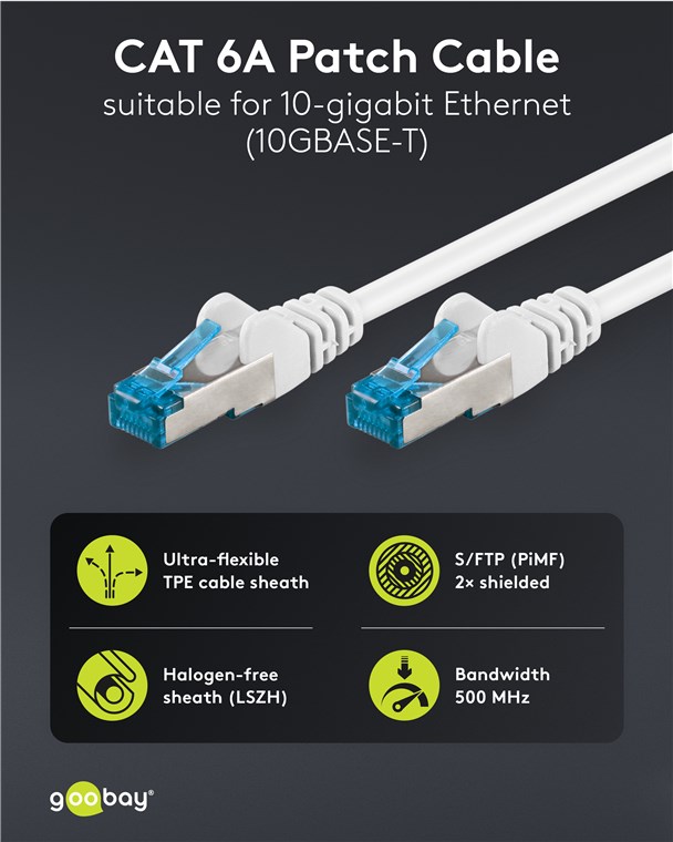- Fast, faster, CAT 6A: As a CAT 6A network cable, suitable for 10 Gigabit Ethernet 10BASE-T, 100BASE-TX, 1000BASE-T, 10/100/1000/10000 Mbit/s