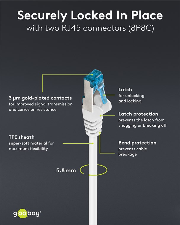 - Simply connected: Double-shielded LAN cable with 2x RJ45 plugs for connecting network components at home, in the office, in the server cabinet, etc.