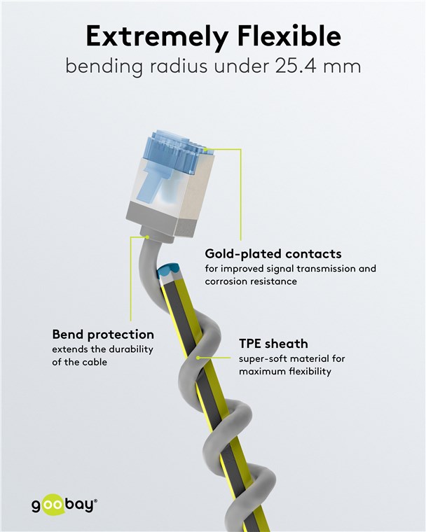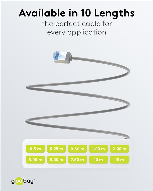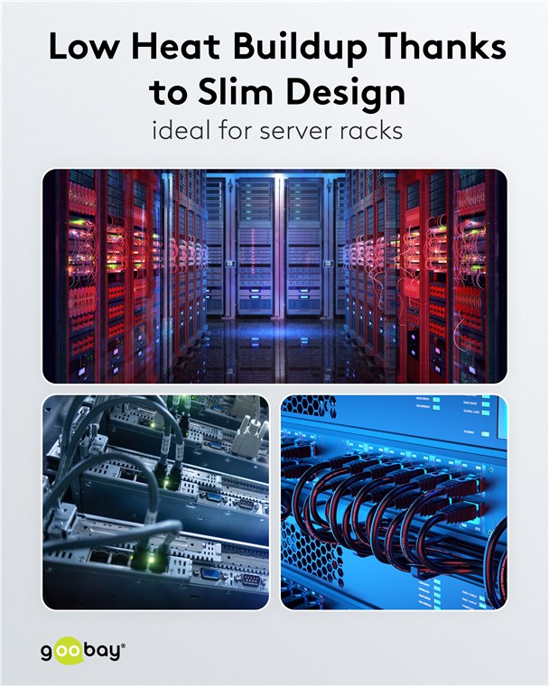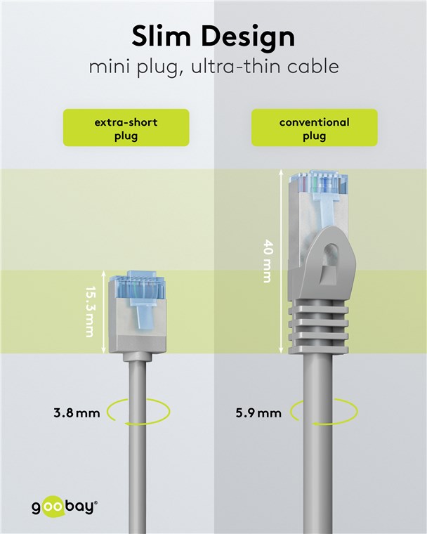 A CATegory of its own: The super-slim CAT cables with extra-short connectors drastically reduce the volume of material in server cabinets and patch panels - for significantly improved air circulation and less heat build-up than with conventional cabling. In addition, the soft TPE jacket and slim copper conductors provide the special flexibility and material efficiency that make this cable generation the perfect network partner.