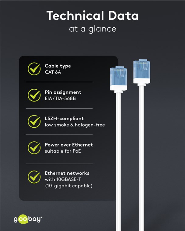 - The CAT 6A network cable is perfect for fast connections such as 10 Gigabit Ethernet 10GBASE-T, 100BASE-TX, 1000BASE-T and 10/100/1000/10000 Mbit/s
