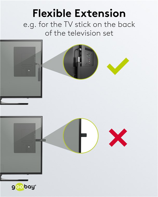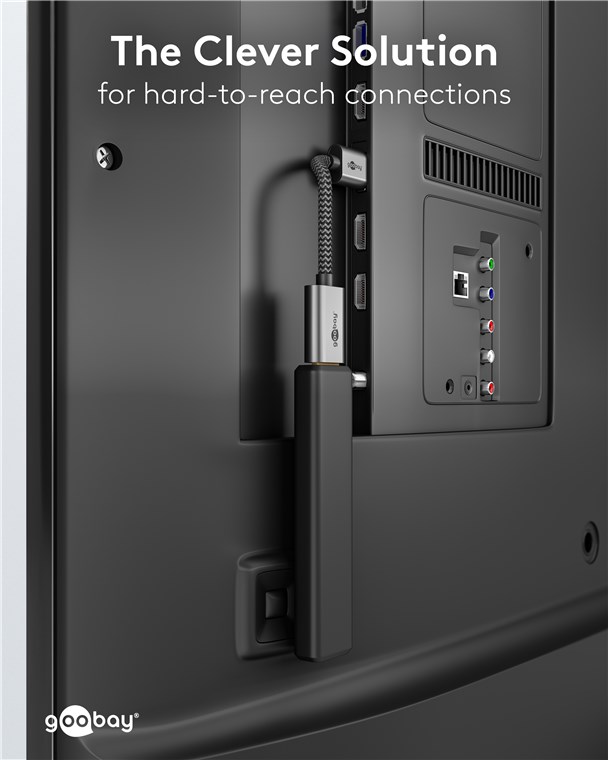 - Flexible and bendable short extension for connections that are difficult to access, e.g. on the back of the TV