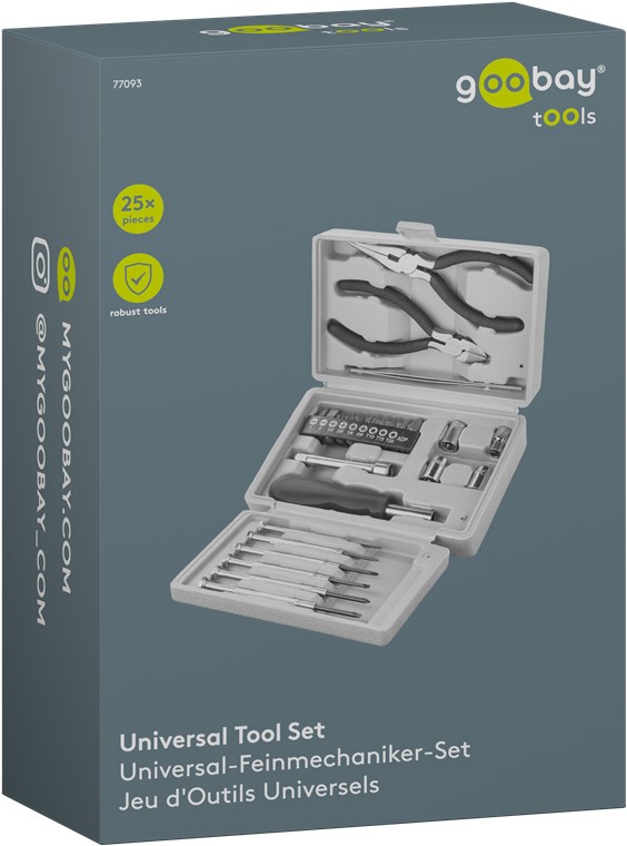 With the tool set, you always have all essential screwdrivers and pliers at hand. Thanks to its small size, the handy case can be stored anywhere and is your helpful companion when on the road, camping or on holiday.