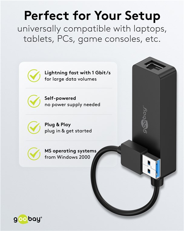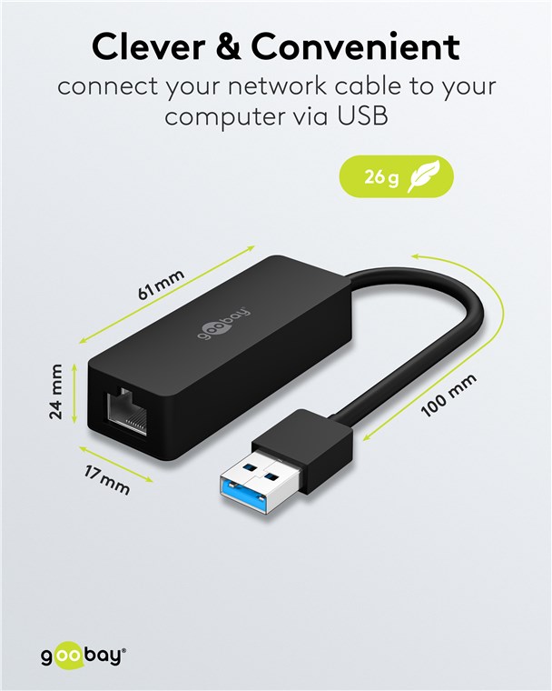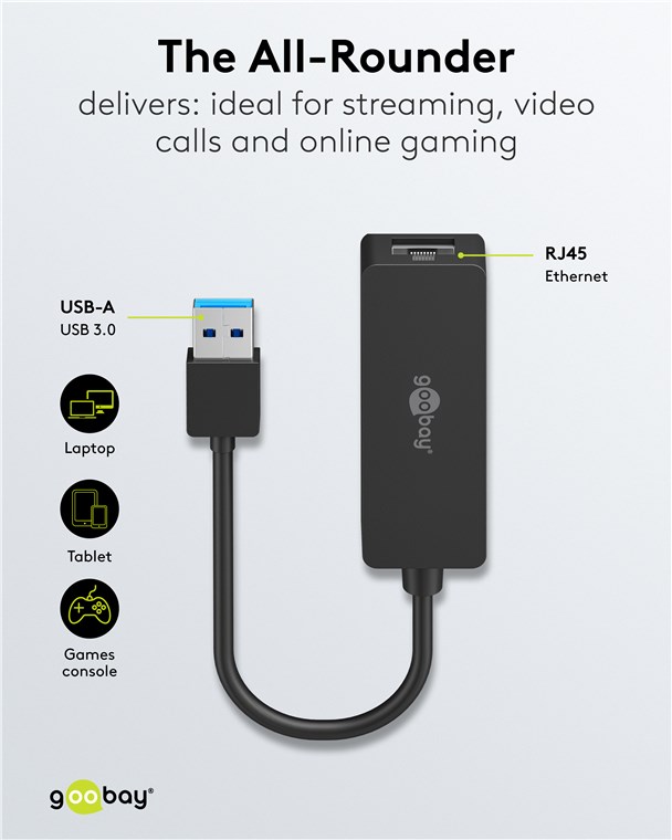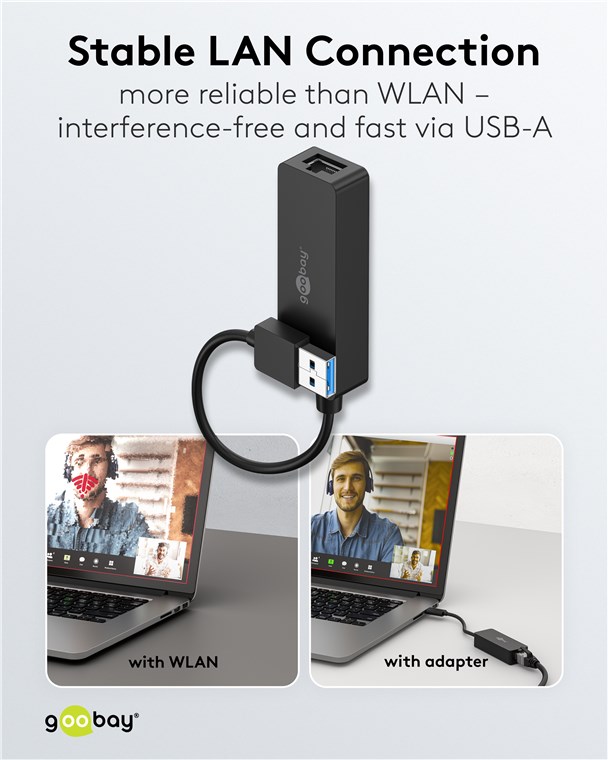 Wired Internet is not as prone to interference as WLAN, but your laptop doesn't have a dedicated Ethernet port? The handy LAN USB adapter conveniently connects your computer to an existing network cable. For online gaming, video calls and streaming with Gigabit Ethernet – without any lag or connection issues. Connect quickly, stream securely!