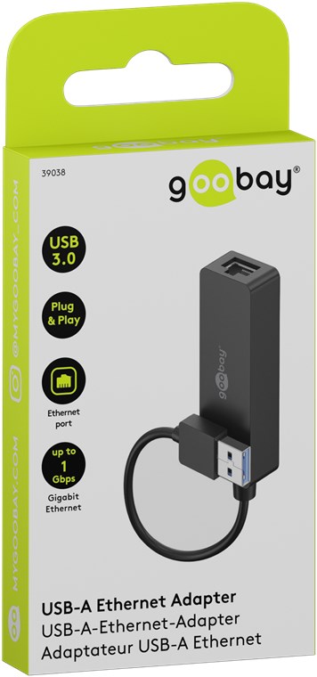 - USB LAN adapter for a full-duplex network connection with 10/100/1000 Mbit/s via the USB-A socket of a computer