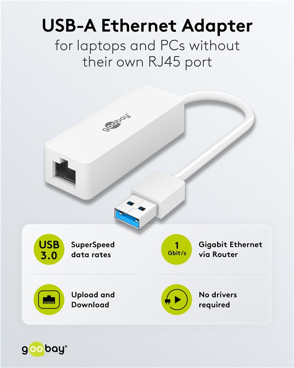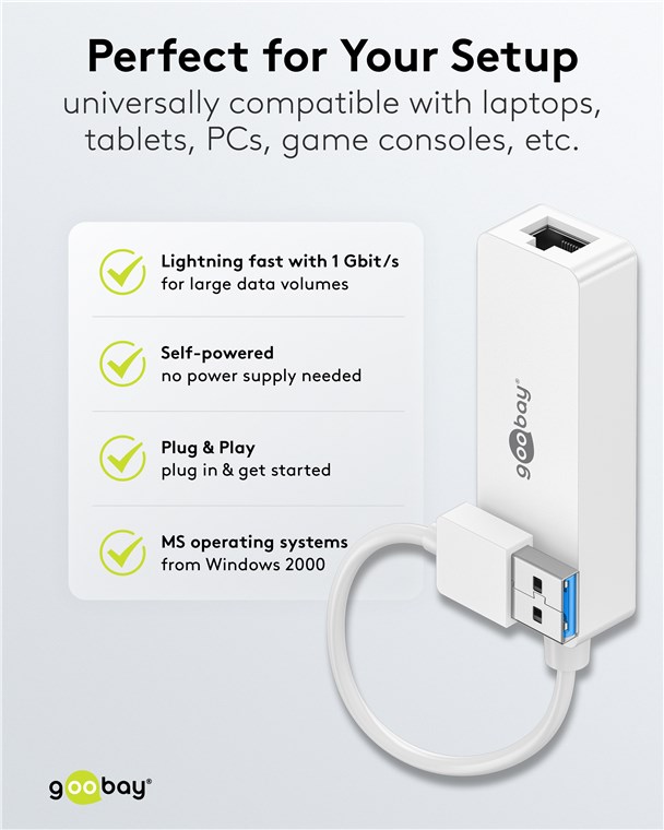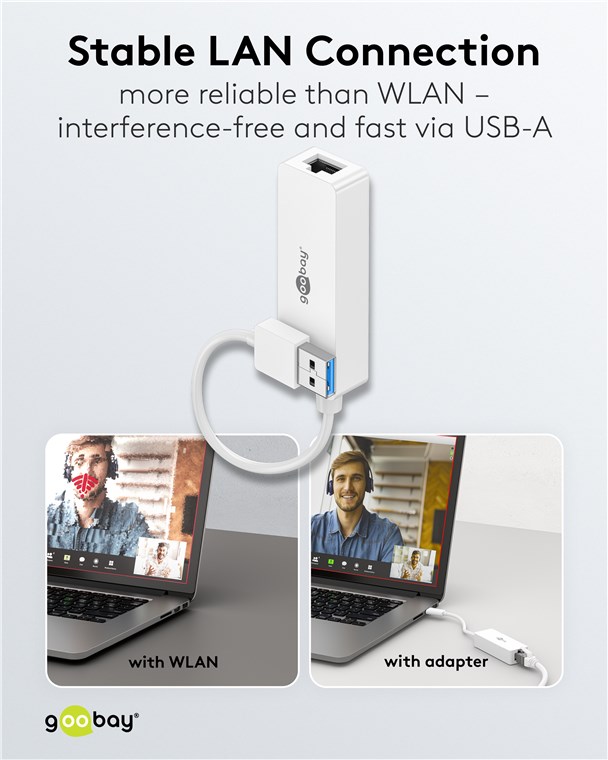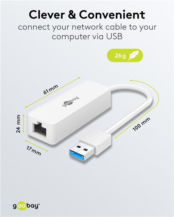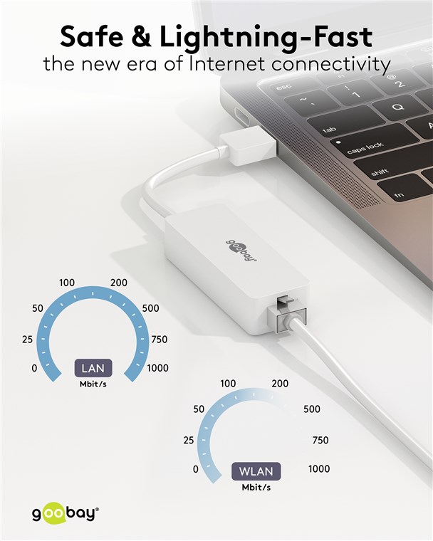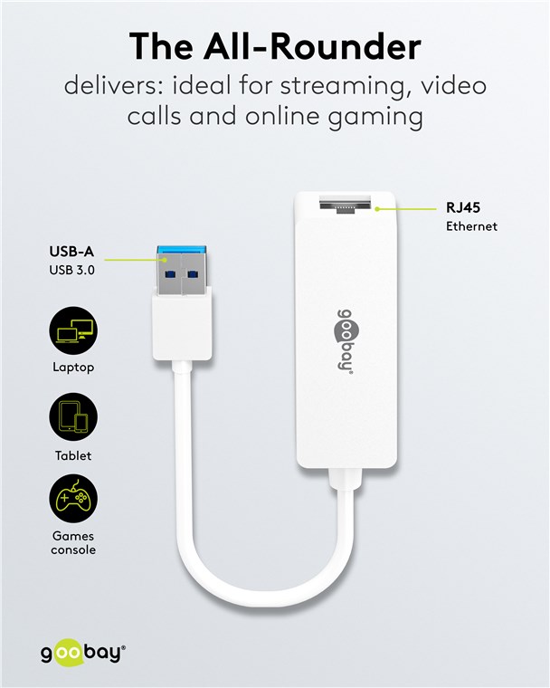 Wired Internet is not as prone to interference as WLAN, but your laptop doesn't have a dedicated Ethernet port? The handy LAN USB adapter conveniently connects your computer to an existing network cable. For online gaming, video calls and streaming with Gigabit Ethernet – without any lag or connection issues. Connect quickly, stream securely!