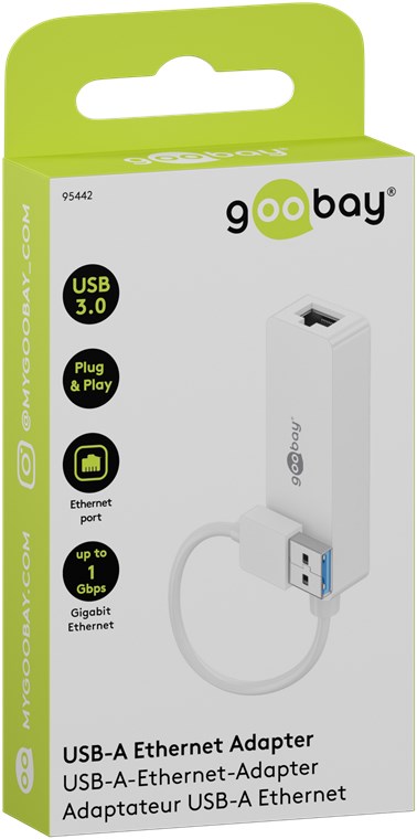- USB LAN adapter for a full-duplex network connection with 10/100/1000 Mbit/s via the USB-A socket of a computer