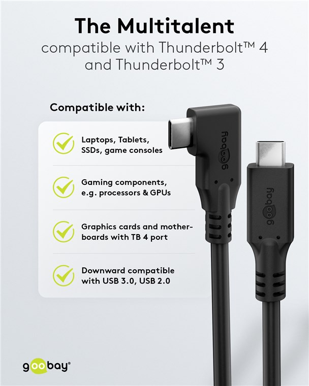 - With a powerful 60 W, the USB-C™ charging cable is perfectly tailored to power laptops, tablets, displays, SSDs, games consoles or hubs