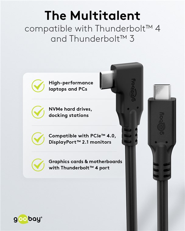 - The most flexible USB cable to date: Enables data tunneling from DisplayPort™ 2.1 and PCIe™ 4.0 and can be connected directly to ports with Thunderbolt™ 4 or Thunderbolt 3™