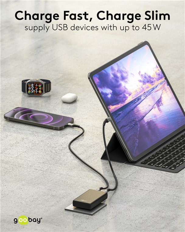 - With its powerful output of 45 W and the versatile USB-C™ connection, the charging adapter is suitable for numerous devices, from smartphones to small notebooks