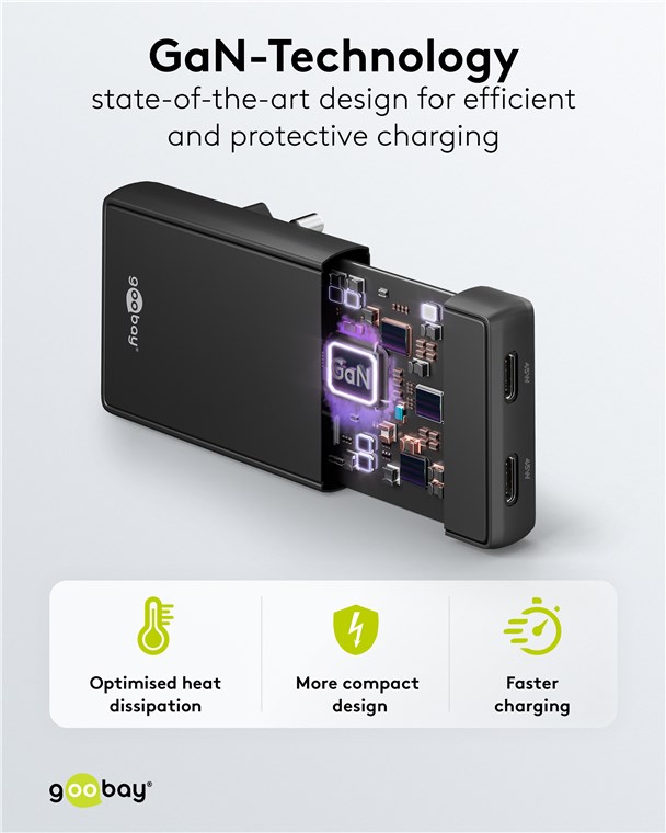 - Semiconductors with GaN technology allow for faster, more efficient charging and a lighter, more compact design compared to conventional chargers