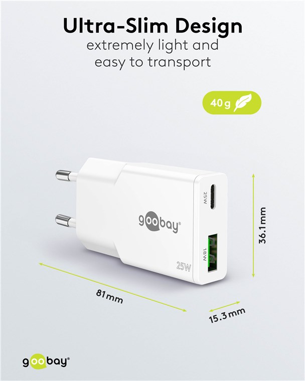 - With its compact, minimalist slim design, the USB-C™ charger slides easily into any bag and is the perfect companion when travelling