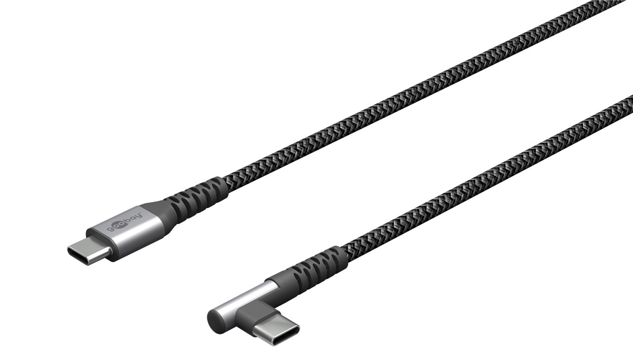 USB-C™ to USB-C™ Textile Cable with Metal Plugs (Space Grey/Silver), 90°, 0.5 m