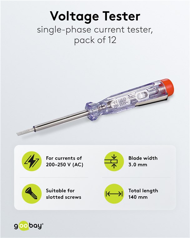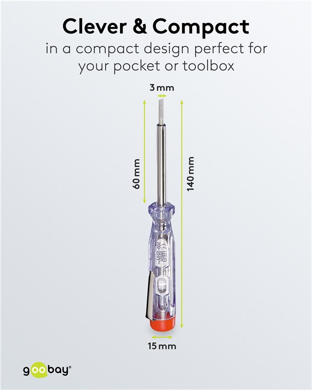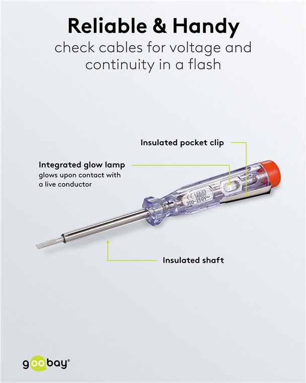- With integrated glow lamp that lights up when coming into contact with a live conductor