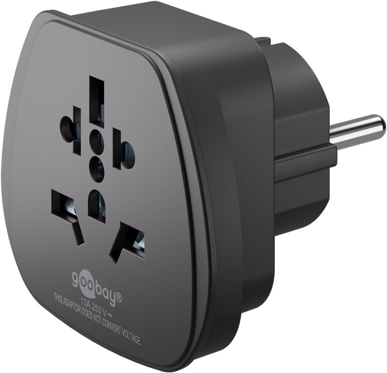 for connecting international devices (Type A, B, G, I, J, L) to sockets in Europe (Type E/F)