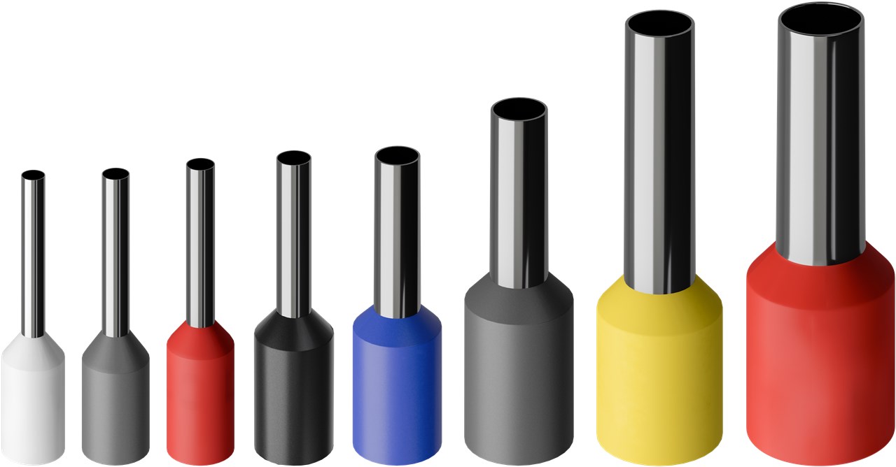 8 types for full flexibility, insulated, for crimping to stranded cables