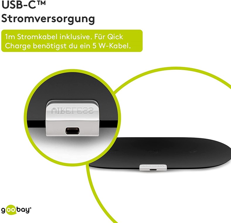 - The elegant design of the Goobay Qi charger is complemented by the exclusive textile surface.