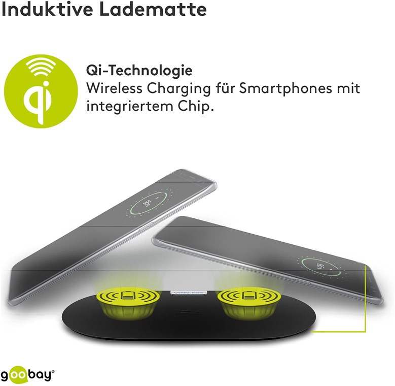- The Goobay dual wireless fast charger enables charging of 2 devices that support induction technology (Qi-Standard).