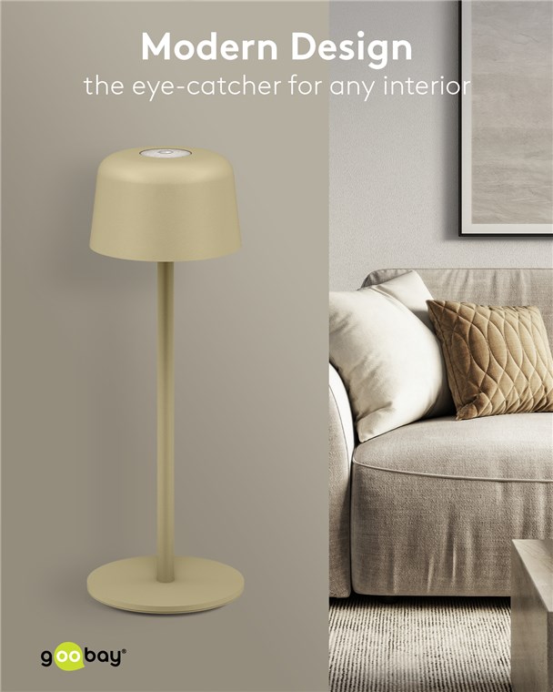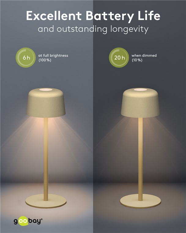 With its minimalist, Scandinavian design, the small table lamp refines any living room, bedroom or dining room and makes a style statement at every garden party. Made from high-quality, solid metal, the innovative Goobay light stands for quality and durability.