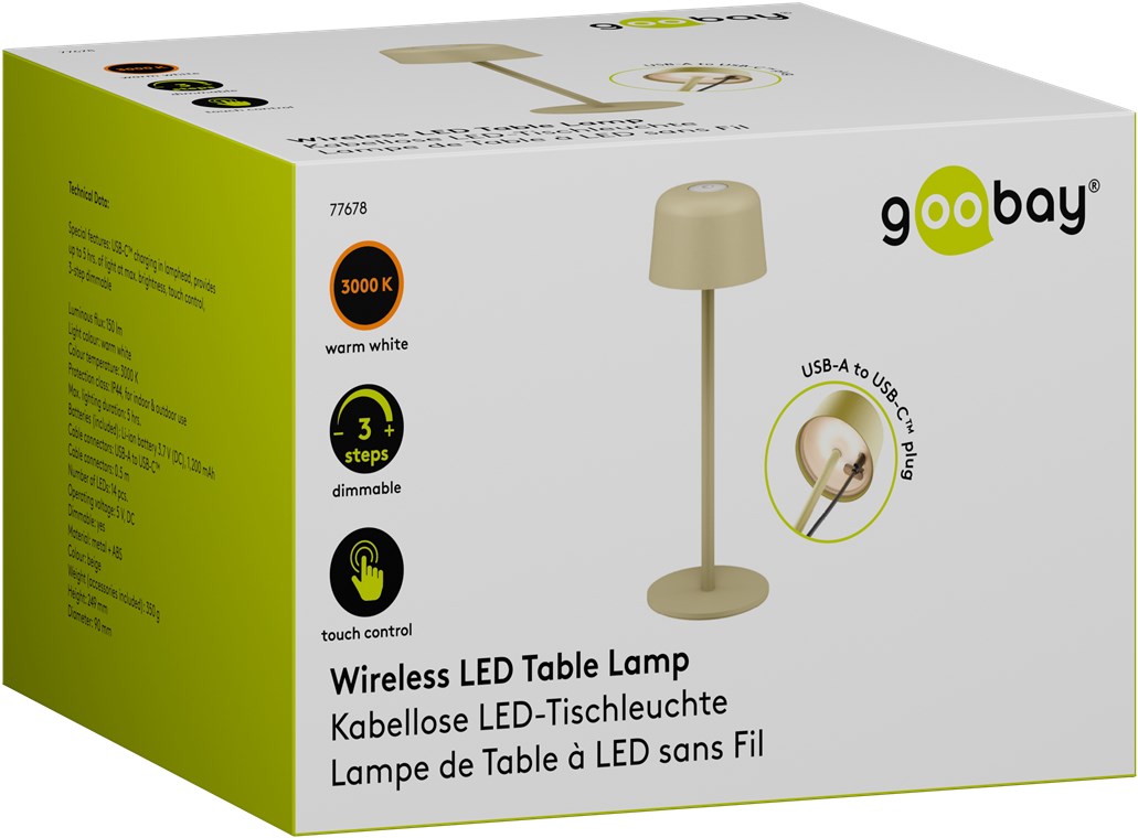 Wireless LED Table Lamp, Size S, 25 cm, beige
