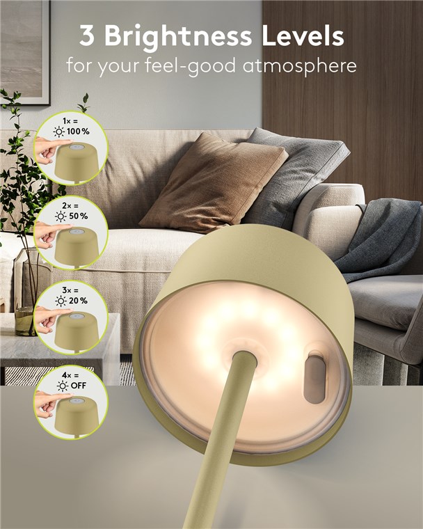 - The LED lamp switches between three brightness levels and off mode with a light touch on the top