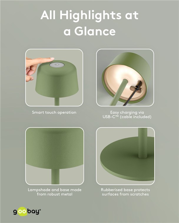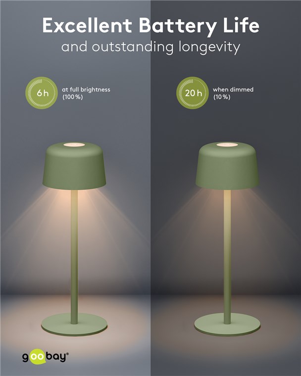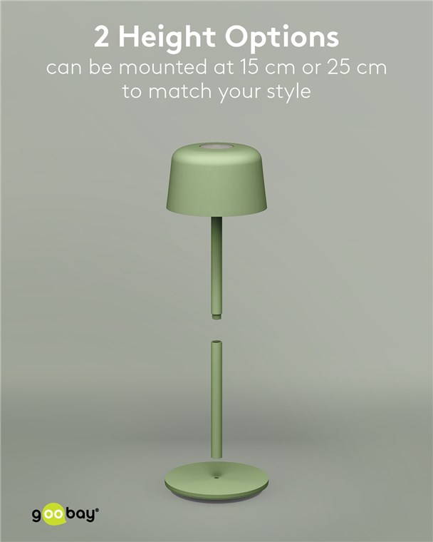 With its minimalist, Scandinavian design, the small table lamp refines any living room, bedroom or dining room and makes a style statement at every garden party. Made from high-quality, solid metal, the innovative Goobay light stands for quality and durability.