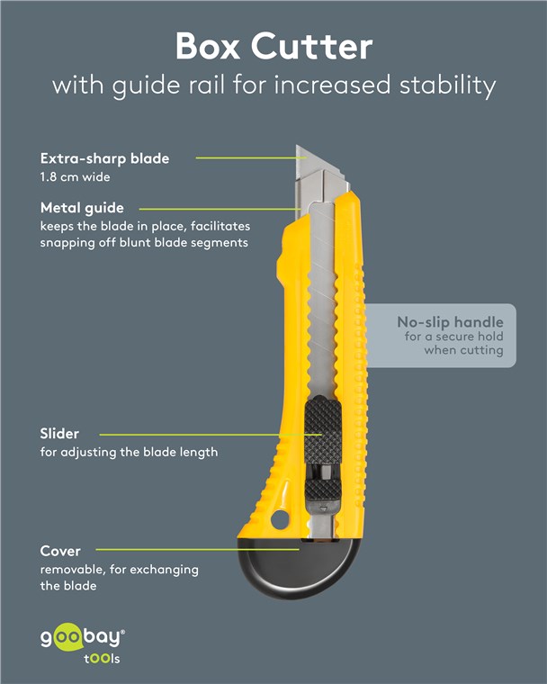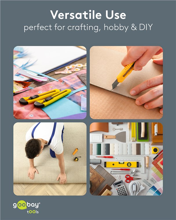 - Cutter fiable et tranchant pour la découpe de matériaux tels que le carton, le ruban adhésif, les photos, le film plastique, le bois tendre ou le papier