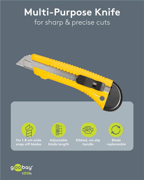 Cutter pratique et sûr pour de nombreux travaux de découpe à la maison, dans le domaine des loisirs et du bricolage. La lame à segments peut être cassée au niveau des repères au cas où la pointe s'émousse, afin de maximiser l'utilisation de la lame.