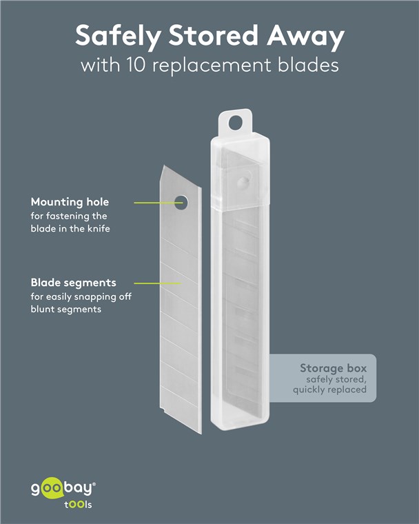 - Lames à segments avec repères pour casser la lame lorsque la pointe s'émousse, afin de maximiser l'utilisation de la lame