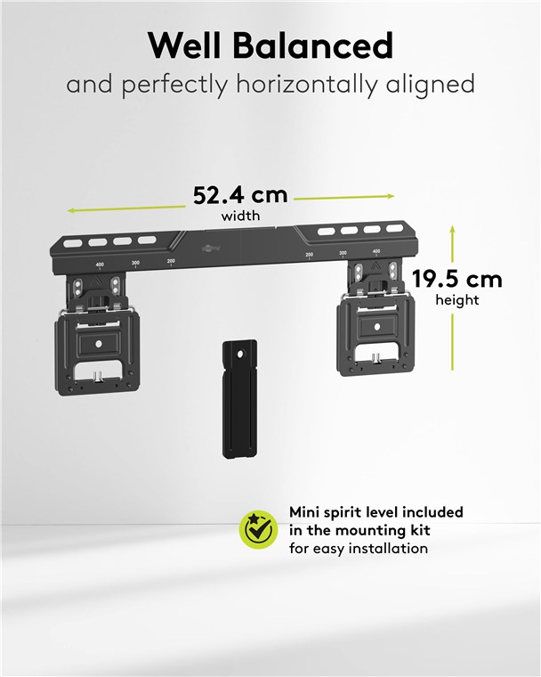 - Avec des repères de distance pratiques et compatibles VESA pour une installation et un alignement précis (mini-niveau à bulle inclus dans le matériel de montage)