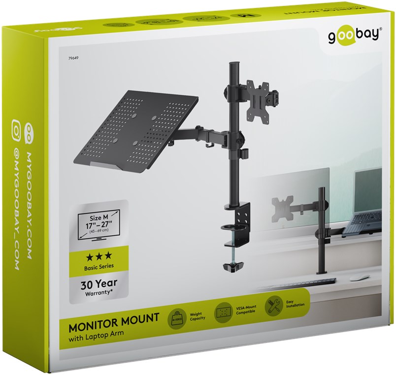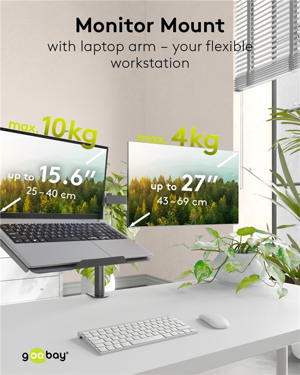 pour ordinateurs portables de 10 à 15,6 pouces (25 à 40 cm) et écrans de 17 à 27 pouces (43 à 69 cm), max. 10 kg