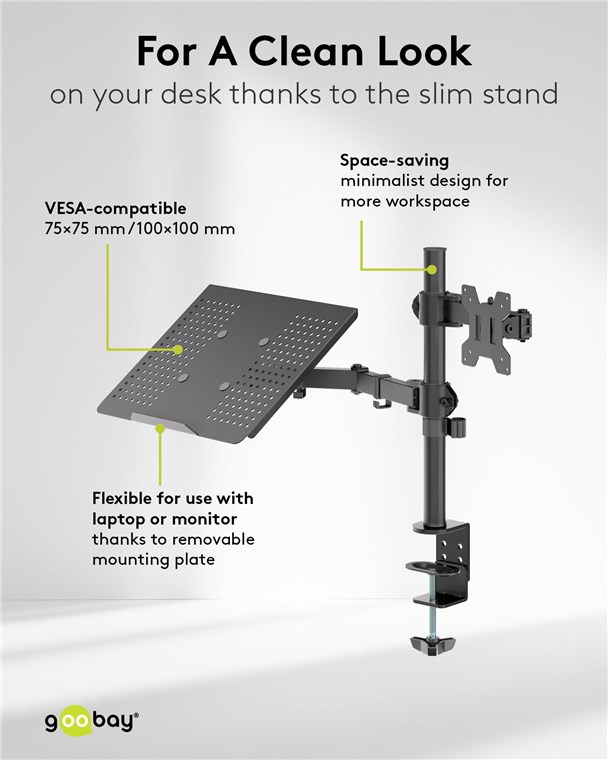 - Avec son pied élancé, le support de moniteur robuste est la solution peu encombrante pour le bureau, offrant une liberté totale et un look épuré