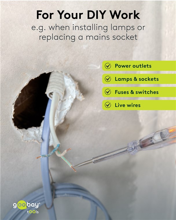 • Outil pratique pour tester rapidement et facilement la tension des raccordements électriques