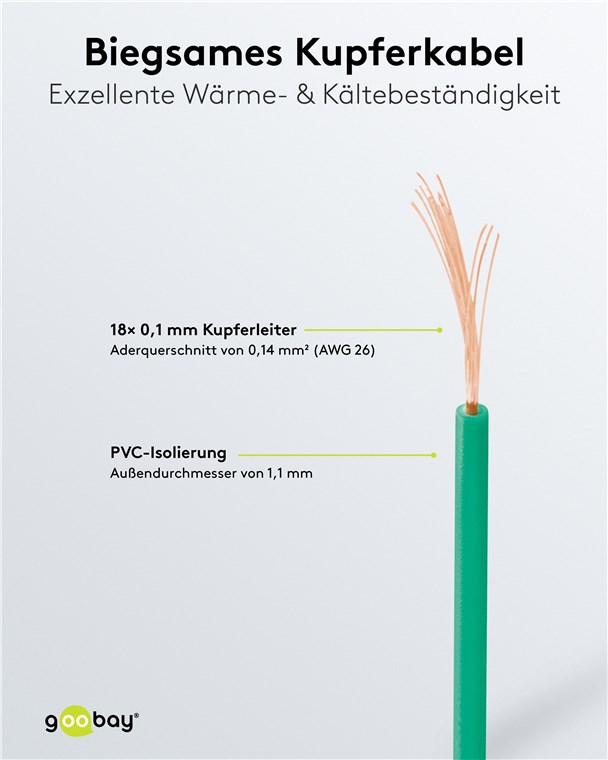 - Jako elastyczna linka w izolacji PVC nadaje się szczególnie do okablowania urządzeń elektrycznych lub zespołów, np. urządzeń gospodarstwa domowego lub przyrządów pomiarowych