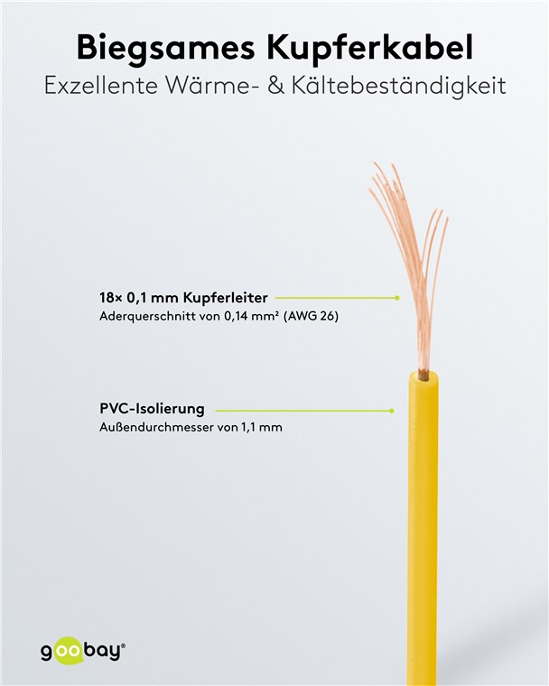 - Jako elastyczna linka w izolacji PVC nadaje się szczególnie do okablowania urządzeń elektrycznych lub zespołów, np. urządzeń gospodarstwa domowego lub przyrządów pomiarowych