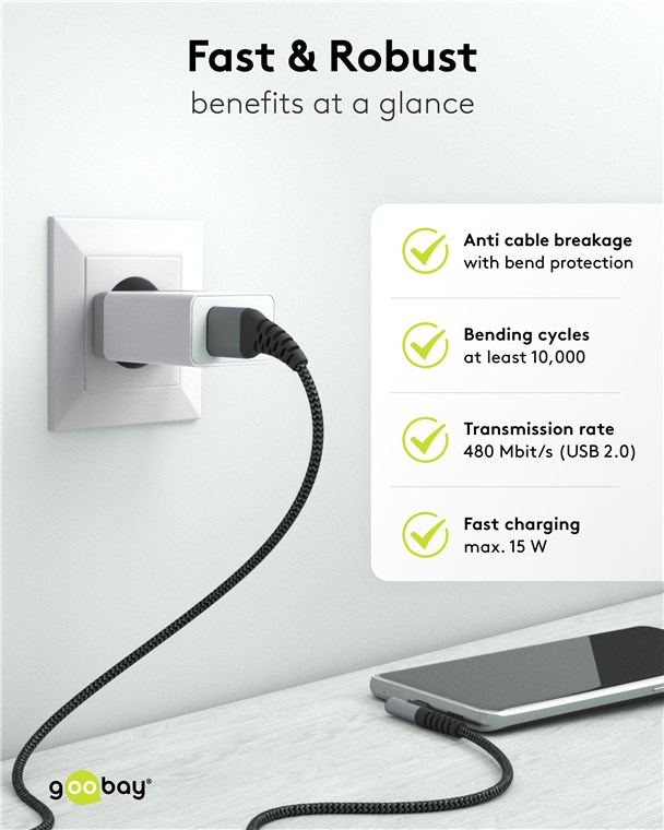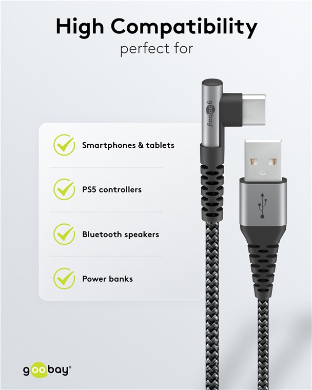 - Kabel ładujący USB-C™ firmy Goobay (USB 2.0) umożliwia szybkie ładowanie z maksymalną mocą 15 W