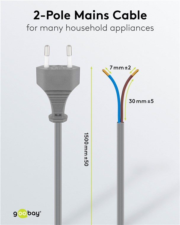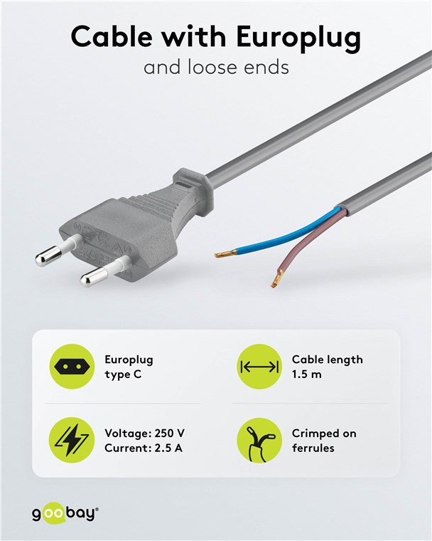 Kabel z wtyczką Euro do montażu, 1,5 m, szary