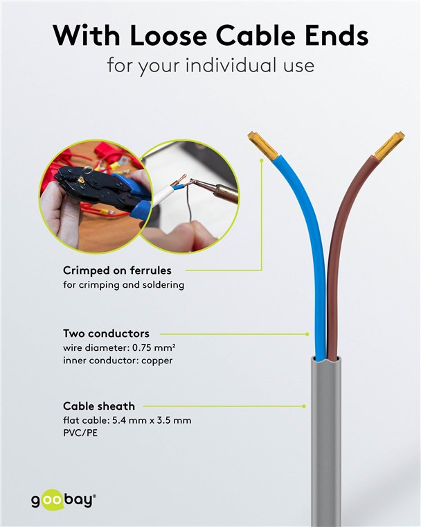- kable energetyczne z otwartymi końcówkami i wciśniętymi końcówkami do montażu
