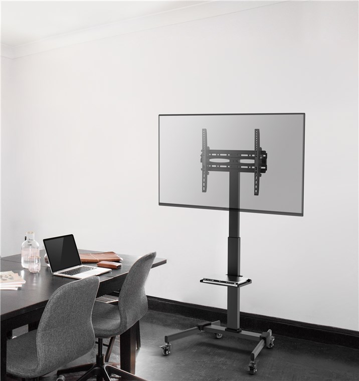 - Mobilny uchwyt telewizyjny z 4 blokowanymi kółkami do elastycznego zastosowania w biurze, salach szkoleniowych lub recepcjach