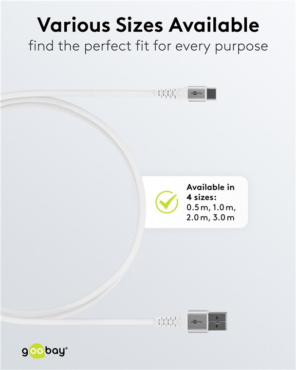 Super miękki kabel tekstylny USB-C™ do USB-A z metalowymi złączami, 0,5 m, biały
