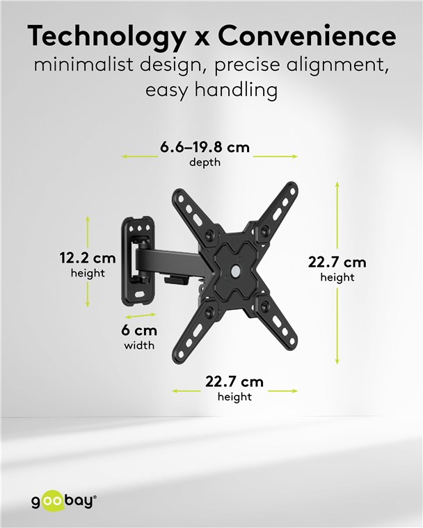 - Dzięki wysuwowi do 19,8 cm i funkcji obrotu uchwyt ścienny umożliwia oglądanie telewizora nawet pod trudnymi kątami