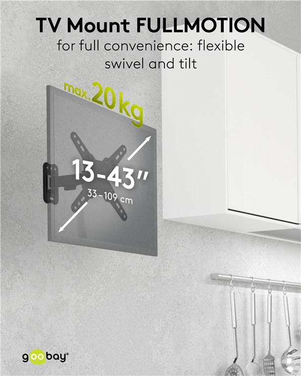 - Uchwyt telewizyjny idealnie nadaje się do małych urządzeń w niszach oraz pod/między szafkami górnymi, np. w kuchni lub sypialni