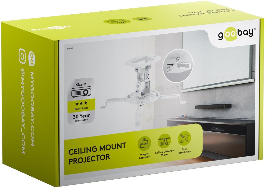 Nowoczesna równowaga między elastycznością a dyskretnym wyglądem. Niezależnie od tego, czy chodzi o relaksujący wieczór z kinem domowym w domu, czy profesjonalne prezentacje w biurze, solidny uchwyt sufitowy stanowi niezawodne wsparcie dla Twojego projektora. Dzięki elastycznemu obracaniu i pochylaniu zawsze znajdziesz idealny kąt widzenia, niezależnie od pomieszczenia lub wysokości montażu. Aby w pełni skupić się na tym, co najważniejsze.