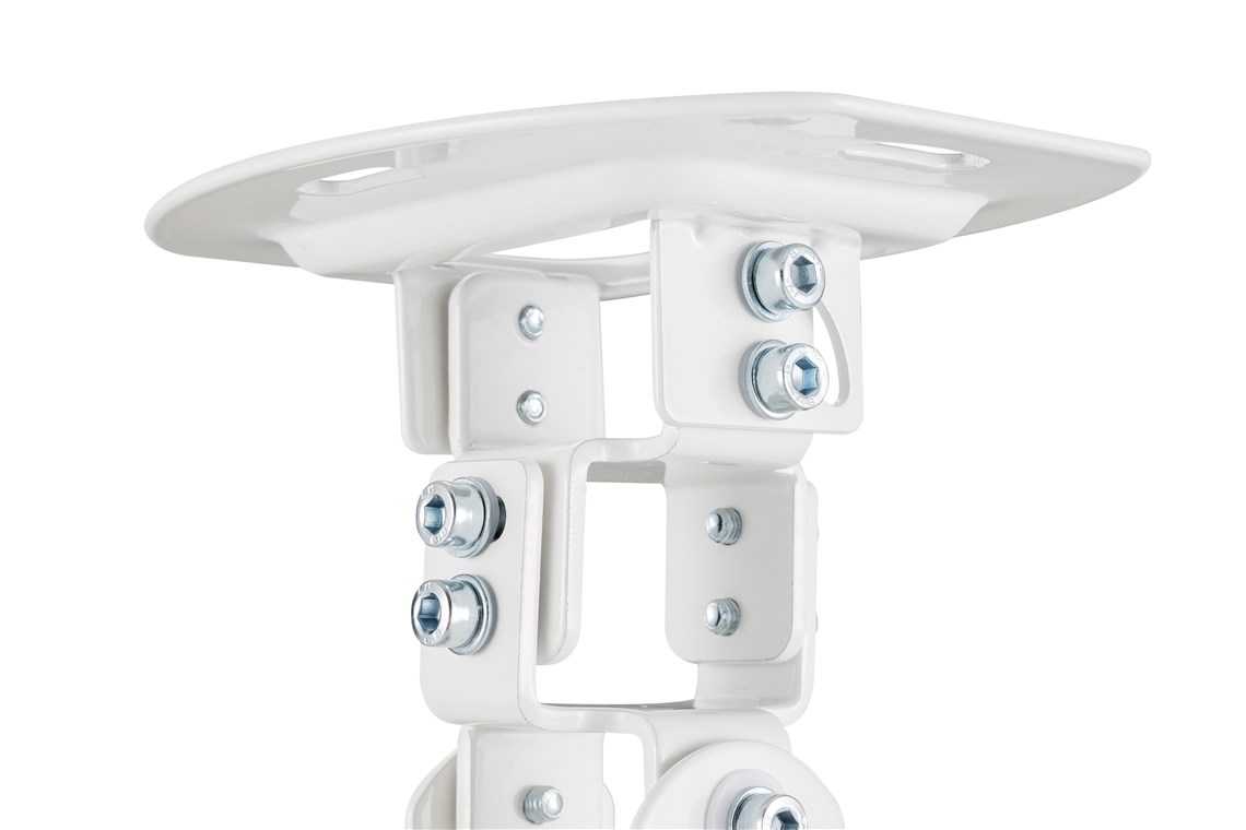 - Elastyczna szerokość: Cztery ramiona mocujące uchwytu sufitowego można płynnie przesuwać, dostosowując je do wszystkich rozstawów otworów między 13,7 a 32 cm