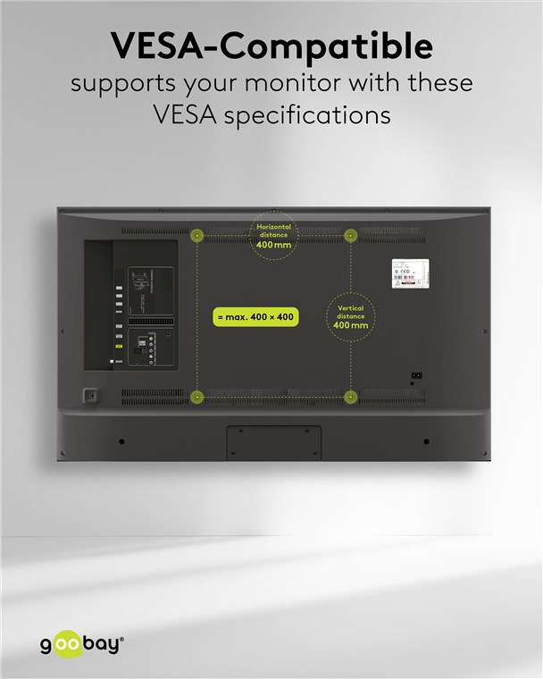 - Uchwyt do telewizora jest zgodny ze standardem VESA 400x400 mm oraz wszystkimi mniejszymi wymiarami VESA