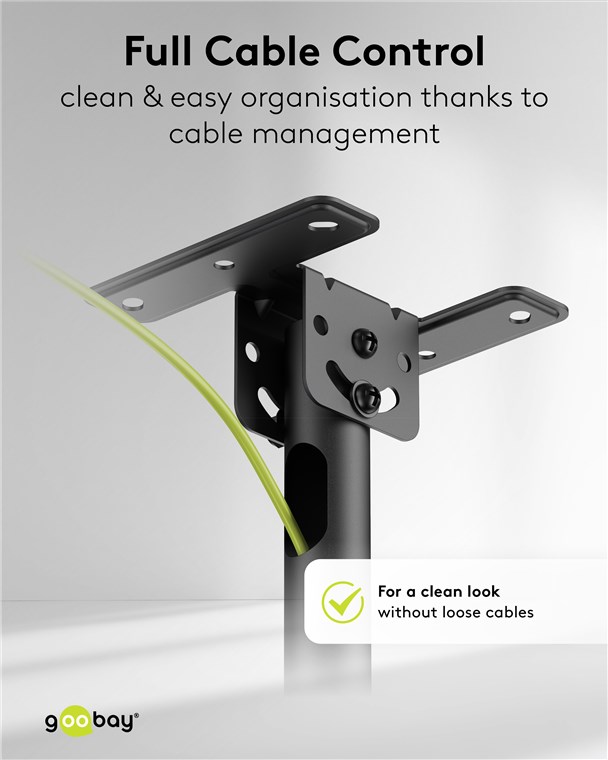 - Zintegrowany system zarządzania kablami dyskretnie ukrywa kable w ramieniu teleskopowym – zapewnia to estetyczny wygląd bez luźnych kabli